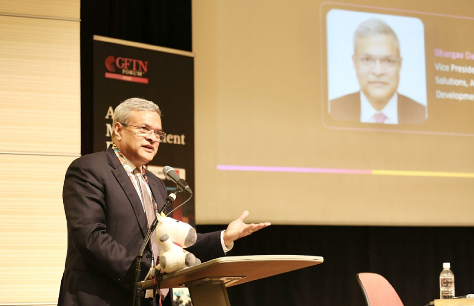 ADB Vice-President Bhargav Dasgupta presents the Bank's initiatives to support startups and promote sustainable investment at the GFTN Forum Japan 2025 (Tokyo, March 4, 2025).
