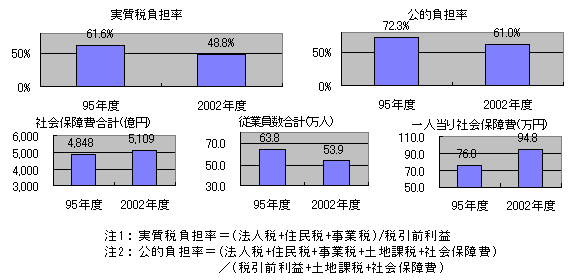 | (1) | 法人事業税の外形標準課税の再検討(極めて問題が多く拙速な導入は望ましくない。制度本来の趣旨を徹底させ企業規模に関らず応益に対して同等の負担を求めるなど、受益と負担の一致を基本に導入時期もあわせて再度検討する必要) |