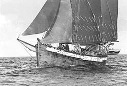 | イルカ観測プロジェクトでは、約100年前に建造された漁業用帆船を改装した全木製のクルーザーで研究者と世界各地から参加したボランティアが2週間を共に過ごした。 |