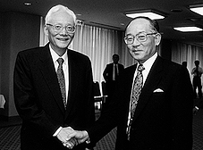 香港の中国返還をめぐって中国国務院の魯平香港・マカオ弁公室主任と懇談