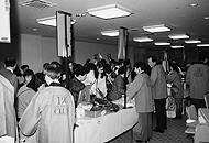 第2部の懇親パーティーでは、若原泰之1%クラブ会長より、本年1月からの通常国会での継続審議となった市民活動促進法案について「21世紀に向けて豊かな活力ある市民社会づくりのために、くじけることなく引き続き成立に向けた働きかけを行なっていきたい」との挨拶がありました。その後、長野オリンピック/パラリンピック期間中、市民による音楽演奏で世界の人々を迎えようと活動するMVSC(長野オリンピック音楽ボランティア・サポーターズクラブ)を紹介しました。MVSC代表の神谷悟さんと渡部薫さんによるサックスとエレクトーンの演奏から、自由な発想から各人ができることに取り組むボランティア活動の楽しさを味わいました。