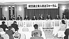 経団連では、96年7月に「企業人政治フォーラム」を設立し、行政改革や税制改革等さまざまな問題をテーマにシンポジウムや講演会等を開催し、企業人の声を直接訴えるとともに、企業人と政治家とのコミュニケーションの促進に努めております。また、政治問題について、各種の調査研究を行なっております。現在、会員は4,000人を超えておりますが、今後、より多くの企業人の声を結集するために、会員企業・団体の皆様の一層のご支援・ご協力を賜わりたいと存じます。多くの皆様のご入会をお待ちしております。
