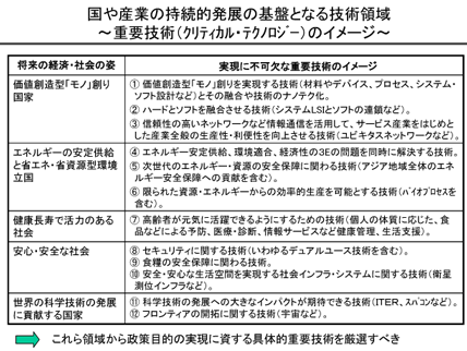 第二は、「知の創造」から「活力の創出」へとつなげていくための政策の強化である。従来型の産学連携を越えて、今後は、大学や公的研究機関、産業界とが国家のシステムとして有機的に連携していく必要があり、なかでも大学を核とした「先端技術融合型COE」の新設を強調している。10年先をにらんだ先端的な新融合領域の研究開発を推進することにより、世界に通用する人材の育成に資するばかりでなく、人材・技術が産業界・大学の間で好循環を成し、産業界も含めた知的・人的なセンターに発展していくものと期待される。