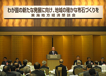 開会あいさつした東海連の岡田会長は、現下の厳しい経済状況において当地域が発展していくための課題として、(1)モノづくりにおける「マーケティング力」と「デザイン力」の向上(2)今年名古屋で開催される生物多様性条約第10回締約国会議(COP10)の成功(3)多様な観光資源を活用した観光振興(4)航空宇宙産業の成長促進(5)産業振興を支える陸・海・空のインフラ整備――を挙げた。