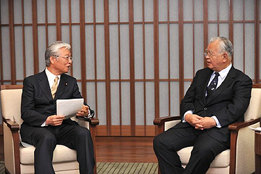 | 直嶋民主党副代表(左)と米倉会長 |