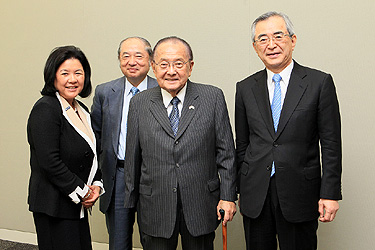 左からイノウエ米日カウンシル会長、小島 副会長、イノウエ上院議員、川村副会長 |