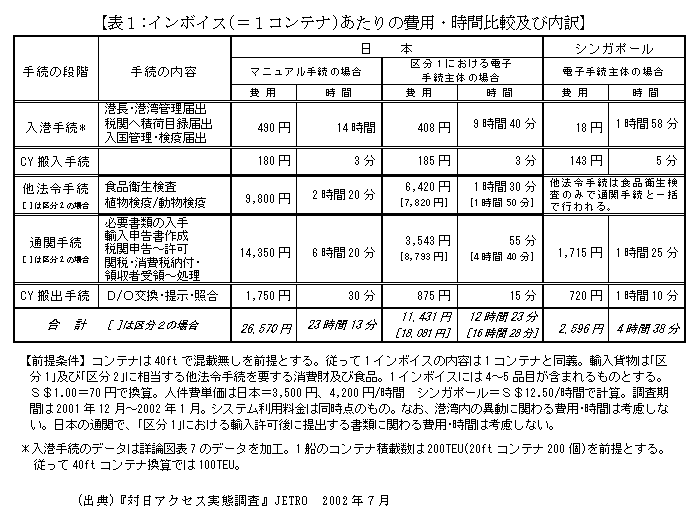 本年7月、NACCS(海上貨物通関情報処理システム)、港湾EDI及び乗員上陸許可支援システムなどの各システムを相互に接続し、それらの連携を図るシングルウインドウシステムの供用が開始され、輸出入・港湾関連諸手続きの効率化に向けた第一歩が踏み出された。しかし、各種申請の見直しや現行の申請書類の徹底した簡素化など、電子化に先立って行うべき輸出入・港湾諸手続全般のBPR(業務改革)については、未だ不十分である。