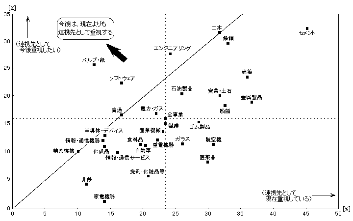=[将来「国内の大学及び付属研究機関」と「国内の公的研究機関」を連携相手として重視しているという回答のポイント数の比率の合計]