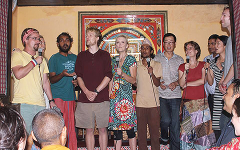 | 大学にて、RYIフェアウェルにてシュローカを披露する学生、筆者右から2番目 |