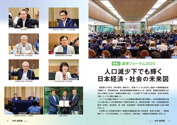経団連は7月24、25の両日、軽井沢で、「夏季フォーラム2025」(議長=小路明善副会長)を開催した。筒井義信会長、冨田哲郎審議員会議長をはじめ、副会長、審議員会副議長ら計43人が参加したほか、有識者を講師に迎え、「人口減少下でも輝く日本経済・社会の未来図」を統一テーマに活発に議論した。