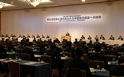 開会あいさつのなかで中国経連の山下会長は、円高による産業空洞化の加速や雇用の縮小が地域産業に深刻な影響を与えているなか、政府は危機意識とスピード感を持って、円高対策や法人税の引き下げ、TPP(環太平洋経済連携協定)などの経済連携の推進を進め、新たな成長戦略を早急に実現することが必要であると指摘。とりわけ、(1)アジアとの連携強化と地域産業の競争力強化(2)観光の振興(3)防災、減災も考慮した社会基盤の整備――に政府と経済界が取り組むことで、中国地方の活力を高めていくことが重要であると述べた。
