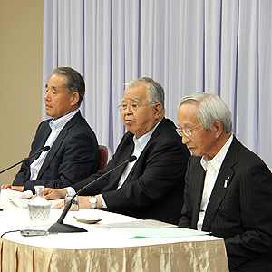経団連(米倉弘昌会長)、日本商工会議所(岡村正会頭)、経済同友会(長谷川閑史代表幹事)の経済三団体は18日、東京・大手町の経団連会館で緊急会見を開き、エネルギー戦略をめぐる経済界の考えを表明した。
