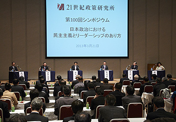 経団連の21世紀政策研究所(米倉弘昌会長、森田富治郎所長)は3月21日、東京・大手町の経団連会館で第100回シンポジウム「日本政治における民主主義とリーダーシップのあり方」を開催した。