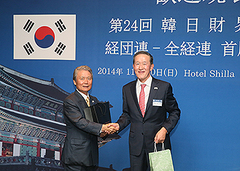 許昌秀全経連会長(右)と榊原会長(第24回経団連・全経連首脳懇談会、12月1日 韓国・ソウル)