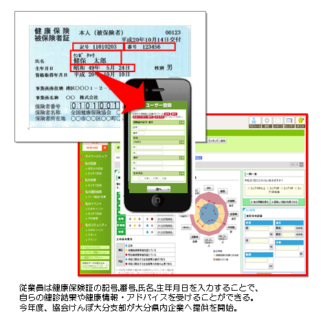 先日、健康保険証の番号などを自分のスマートフォンに入力して、健診結果を閲覧したり、健康情報・アドバイスを受けたりした従業員が、「これから保険証は病気になる前に使います」と話されていたのは印象的でした(図表参照)。まさに、データヘルスが企業の健康づくりに活用されはじめました。