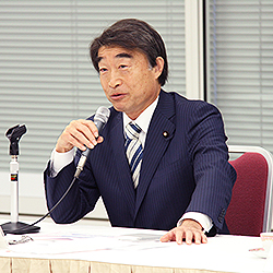 根本議員は冒頭、復興大臣在任中に信条としてきたこととして、次の3点に言及。第1が「現場主義の徹底」、被災地ごとに復興状況が異なることを踏まえ、被災地を頻繁に訪問し、現場での問題を随時吸収し施策への反映に努めたとした。第2は「復興庁の指令塔機能の強化」、テーマに関係する各省の局長級を集めたタスクフォース(戦略実行部隊)を創設し、大臣の陣頭指揮のもとに具体的な制度改正・運用の改善を図るなど、政治家が大きな方向性を示し、官僚の政策立案作業を加速させる真の政治主導を実践したと述べた。第3に「復興ステージに応じた取り組みの推進」、住宅再建やまちづくり等において、復興のステージ(時間軸)ごとの課題の具体的かつ横断的な解決を目指した施策パッケージを講じたことを挙げた。