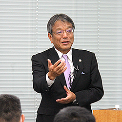 最後に、東燃ゼネラル石油の武藤潤社長が、健康施策の推進にあたっての経営トップの役割と思いを語った。武藤氏は、安全・健康対策に終わりはなく、継続的に全員で取り組まねば、すぐに劣化しマンネリ・形骸化すると指摘。健康経営のエンジンは強力なリーダーシップであり、トップが自身の本気度を示すこと、コミュニケーションが極めて重要であり、有言実行、本音と建前の一致が大事と述べた。そのうえで同社のリスクアセスメントの仕組みや健康増進プログラムを説明。最後に安全・健康施策へのリソース投入の正しさとその効果を確信していること、DBJ健康経営格付取得と健康経営銘柄への選定を通じ、従業員が大事にされていると感じ、さらなる動機づけや励みへとつながることへの期待を述べた。