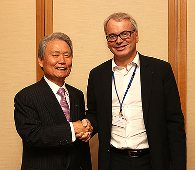 サンチェス・MEDEFインターナショナル副会長(右)と榊原会長
