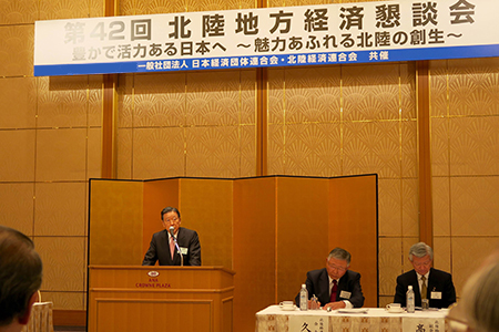 経団連と北陸経済連合会(北経連、久和進会長)は11日、富山市内で「北陸経済情勢懇談会」と「第42回北陸地方経済懇談会」を開催した。