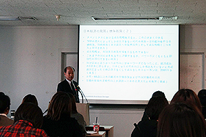 講義では、日本の過去の経済発展と競争政策との関係を振り返るとともに、今後、労働力人口や資本の量的拡大が難しくなるなか、経済成長を達成させるには生産性の向上が不可欠であると述べた。
