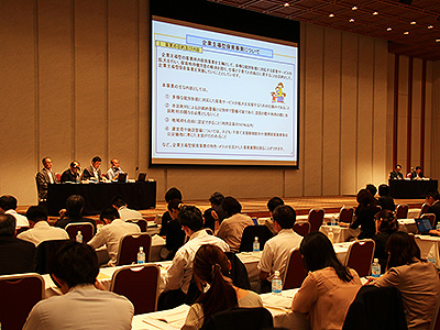 経団連は6日、東京・大手町の経団連会館で、内閣府の竹林経治参事官と三好圭児童手当管理室長を講師として、今年度から開始した「企業主導型保育事業」と「企業主導型ベビーシッター利用者支援事業」に関する説明会を開催した。また当日は、それぞれの事業の運営を担う児童育成協会の本城章秀両立支援事業部統括部長と、全国保育サービス協会の西本徹事業推進課長からもあいさつがあった。
