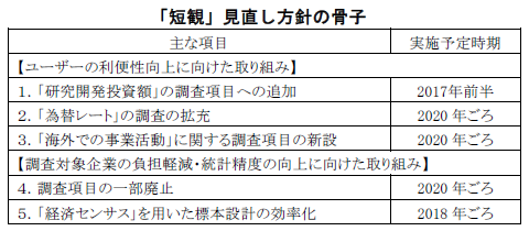 日本銀行では現在、短観について、調査項目の新設・拡充などの見直しを検討している。見直し方針の骨子と主な項目の詳細は次のとおり(図表参照)。