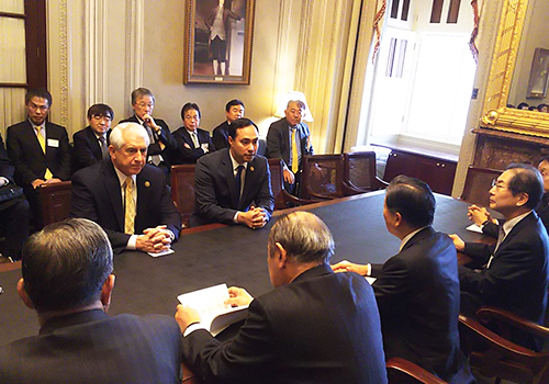 経団連(榊原定征会長)の岩沙弘道審議員会議長、石原邦夫、村瀬治男両アメリカ委員長ら経団連国際対話プロジェクト訪米団が11月29日から12月1日にかけて、福田康夫元首相とともにワシントンDCを訪問した。