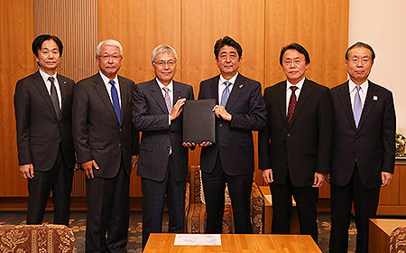 APEC首脳への公式民間諮問団体であるABAC(APECビジネス諮問委員会)はこのほど、2017年の「APEC首脳への提言書」を取りまとめ、ABAC委員に任命されている鈴木裕之氏(野村総合研究所副会長)、大宮英明氏(三菱重工業会長)、髙橋規氏(三井物産顧問)、代理委員の長谷川浩司氏(三菱重工業常務執行役員)らが10月30日、総理官邸を訪れ、安倍晋三総理大臣に提言書を手交した。また、同日付で鈴木氏の後任として林信秀氏(みずほ銀行会長)が任命された。