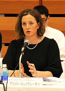 経団連の企業行動・CSR委員会企画部会(小口正範部会長、森川典子部会長)は12月4日、東京・大手町の経団連会館で、GRI(Global Reporting Initiative)のアリソン・ジェノヴェーゼ北米地域責任者から、非財務情報や持続可能な開発目標(SDGs)に関する情報開示、報告の枠組みについて説明を受け、意見交換を行った。説明の概要は次のとおり。