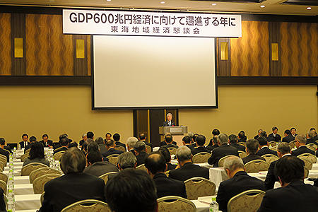 経団連と中部経済連合会(中経連、豊田鐵郎会長)、東海商工会議所連合会(東海連、山本亜土会長)は2月22日、名古屋市内で「東海地域経済懇談会」を開催した。経団連から榊原定征会長をはじめ審議員会議長、副会長らが、中経連および東海連から豊田会長、山本会長をはじめ会員約230名が参加。「GDP600兆円経済に向けて邁進する年に」を基本テーマに懇談した。