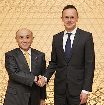経団連は11月6日、東京・大手町の経団連会館でハンガリーのシーヤールトー・ペーテル外務貿易大臣との懇談会を開催した。経団連側からは越智仁副会長・ヨーロッパ地域委員長、清水章ヨーロッパ地域委員会企画部会長らが出席した。今年は日本とハンガリーの外交関係開設150周年であり、両国間の経済関係強化に向けて来日したシーヤールトー大臣は、企業誘致に関する同国の取り組みや英国のEU離脱問題への考えについて説明した。概要は次のとおり。