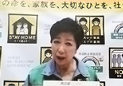 小池知事は、両日ともに、東京都の新規感染者が増加し、特に変異株による感染が急速に拡大している現状に危機感を示した。23日には、「大型連休は感染を抑え込む期間にしていきたい」と述べ、経済界に対し、(1)テレワークの徹底(2)大型連休中の平日の有給休暇の取得推進――を呼びかけた。