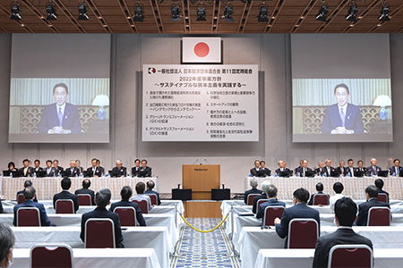 総会では、新体制を決定し、副会長として新たにアサヒグループホールディングスの小路明善会長、東京海上ホールディングスの永野毅会長、日本電気の遠藤信博会長、旭化成の小堀秀毅会長、野村ホールディングスの永井浩二会長の5名が選任された。また、2021年度事業報告および決算が報告されたほか、2022年度事業方針および収支予算を承認した。