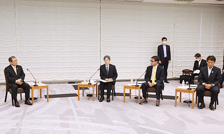経団連の十倉雅和会長は8月25日、寺田稔総務大臣、河野太郎デジタル大臣、宮坂学東京都副知事の訪問を受け、マイナンバーカードの普及に向けた協力要請を踏まえ意見交換した。