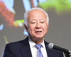 続いて、同書を監訳した地球環境戦略研究機関の武内和彦理事長が講演した。地球の限界(プラネタリーバウンダリー)と人々の福利の向上(ソーシャルバウンダリー)の間に挟まるドーナツ状の範囲内で、成長と人類のウェルビーイングの最大化を目指すべきと述べた。さらに企業は自社の商品だけでなく、その原材料の調達も含めたシステム全体の持続可能性を評価し、あるべき方向への変革をリードしていくことが重要であると強調した。