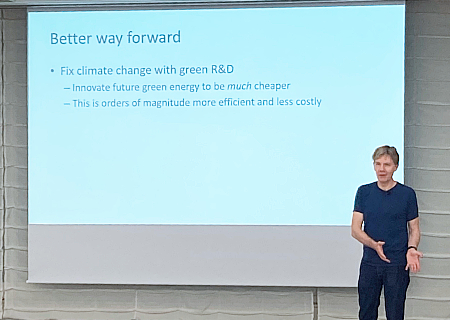 費用対効果に最も優れる気候変動対策は、グリーンエネルギーの研究開発である。他の対策の数分の1のコストで大きな成果を期待できる。とりわけ、国民が厳しい生活を強いられている途上国では、エネルギー価格の高騰や産業の衰退をもたらす対策は受け入れられない。イノベーションによってグリーンエネルギーを促進することが、全ての国にとってのスマートな解決策となる。