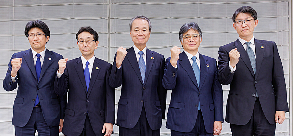 経団連の筒井義信会長は5月29日、東京・大手町の経団連会館で、同日開催の定時総会後に新任の副会長4人と共に記者会見を行った。