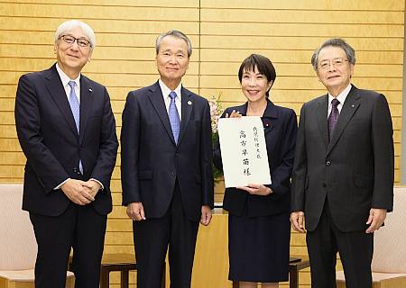 11月17日、経団連の筒井義信会長、日本商工会議所・東京商工会議所の小林健会頭、経済同友会の岩井睦雄代表幹事代行の3人は首相官邸を訪問。高市早苗内閣総理大臣と面会し、各団体の新内閣への要望書を建議するとともに、今後の政策課題を巡り懇談した。