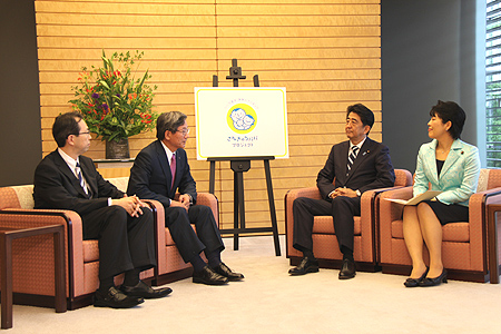 6月29日、経団連の岡本圀衞副会長(日本生命保険会長)は、有村治子少子化対策特命担当大臣、内堀雅雄福島県知事とともに、安倍晋三総理大臣を表敬訪問した。有村大臣は同日に開催された「さんきゅうパパプロジェクト キックオフシンポジウム」(配偶者の出産直後の男性の休暇取得促進を目的としたプロジェクト)の模様を報告。岡本副会長からは、経団連では人口問題委員会を新設し、育児への男女共同参画の促進等を進めていくことを説明した。