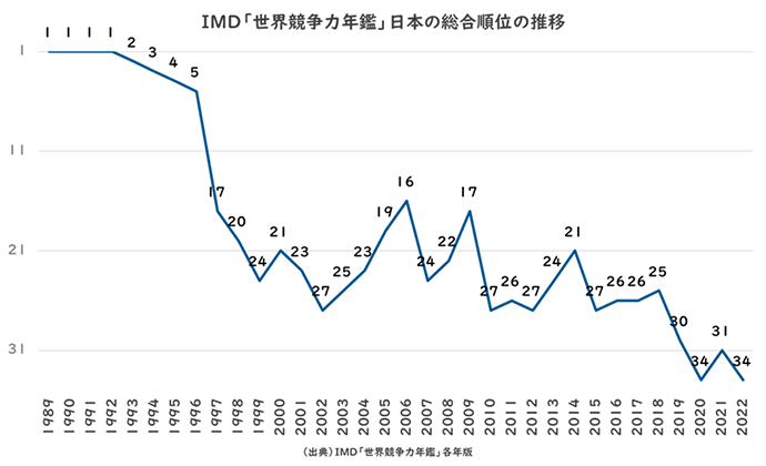 図 3 IMD「世界競争力年鑑」日本の総合順位の推移