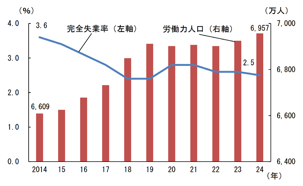 出典:総務省「労働力調査」をもとに経団連事務局にて作成