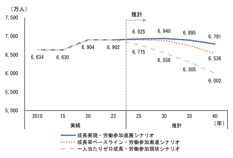 出典:労働政策研究・研修機構「2023年度版 労働力需給の推計」(2024年8月)をもとに経団連事務局にて作成