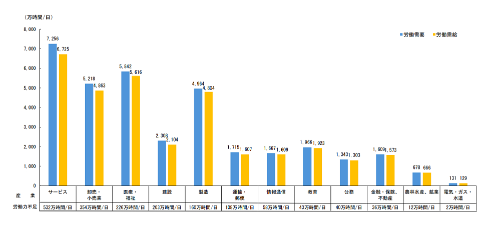 出典:パーソル総合研究所・中央大学「労働市場の推計未来推計」(2024年10月)をもとに経団連事務局にて作成