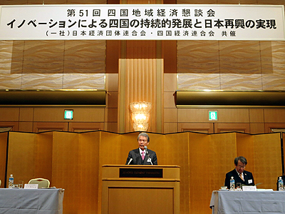 経団連といたしましては、只今申し上げた課題への対応を含め、経済再生に向けた取組みに全力を傾注してまいります。その実現に向けては、四国地域をはじめとする地方の経済界の皆様と、密接に連携していくことが非常に大事であると考えております。本日は限られた時間ではございますが、ご当地の経済活動の現状をお伺いするとともに、経済の活性化に向けた課題や問題意識をお伺いして、率直な意見交換をさせていただきたいと思っております。どうかよろしくお願い申し上げます。